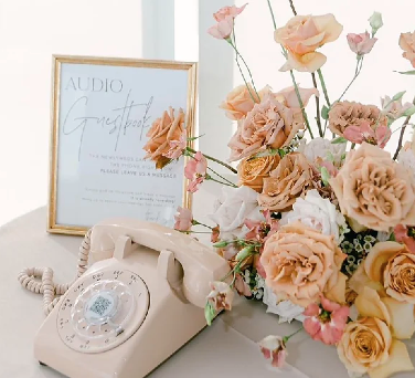 Let guests leave you messages on our fun interactive Telephone Guestbook. Available in multiple colors to match your wedding aesthetic, we’ll integrate this into your welcome table and deliver a downloadable voicemail library within 24 hours of your wedding!